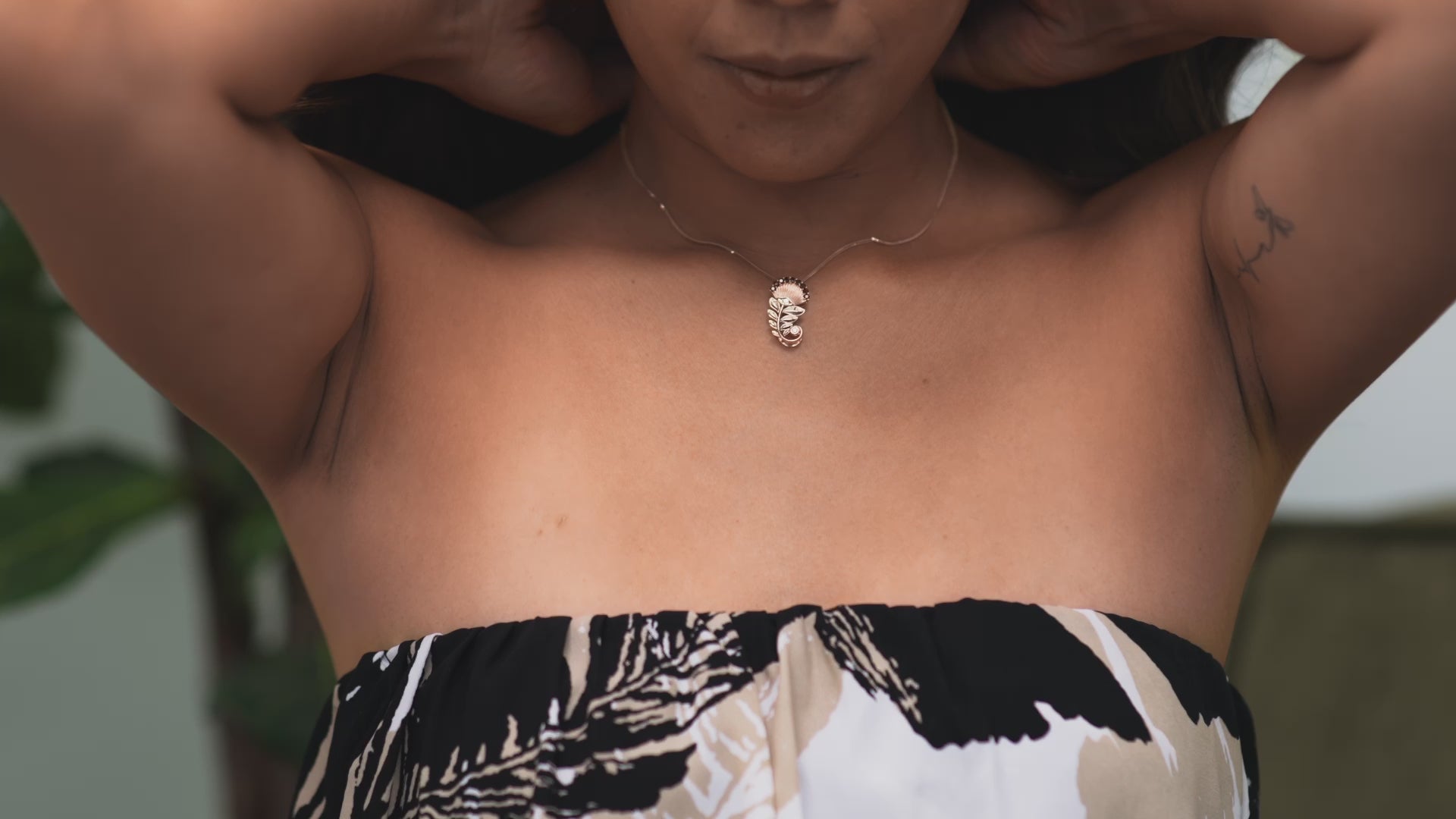 ダイヤモンド付きの2つのトーンゴールドのOhia lehua rubyペンダント-24mm