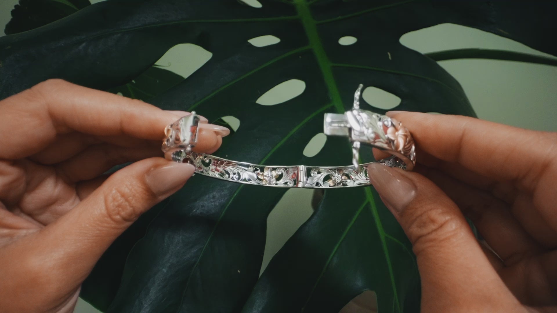 Hawaiian Heirloom Plumeria Hinge Bracelet in Tri Color Gold - 10mm