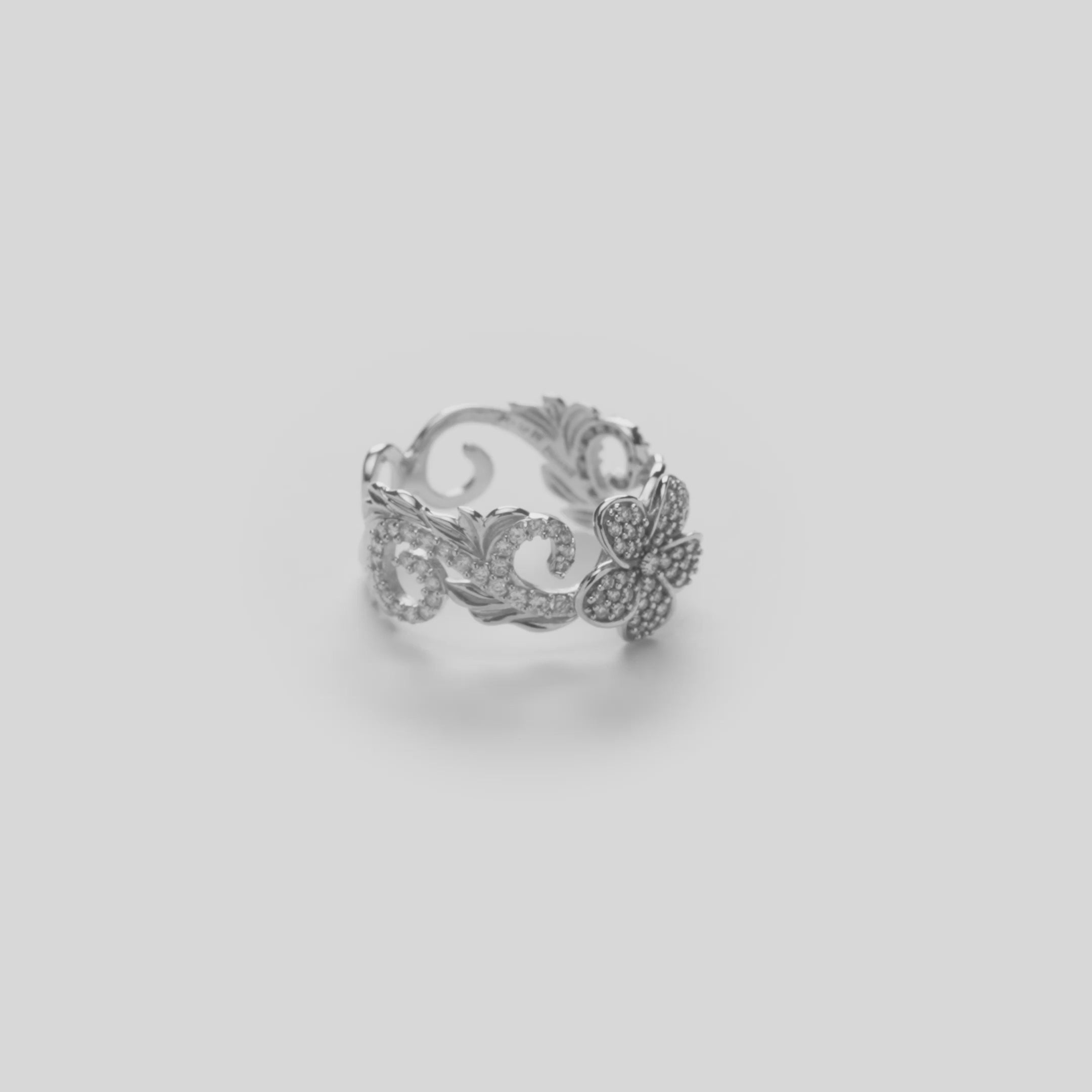 Hawaiian Heirloom Plumeria Ring in White Gold with Diamonds - 10mm