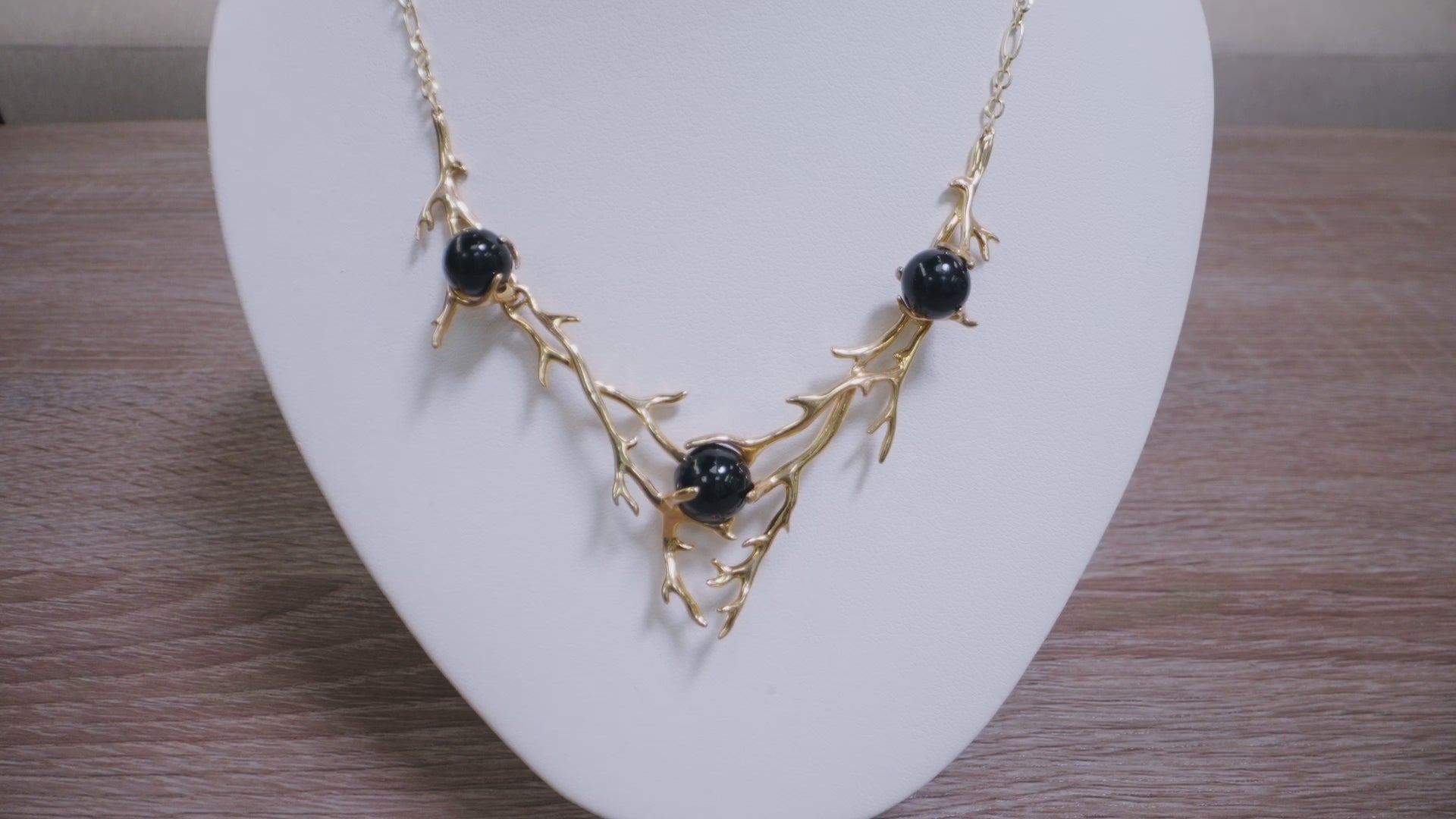 16.5-18" Adjustable Heritage Black Coral Necklace in Gold