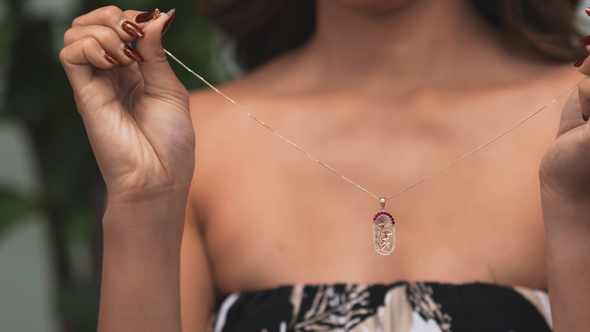 ʻŌhiʻa Lehua Ruby Pendant in Two Tone Gold with Diamonds - 27.5mm
