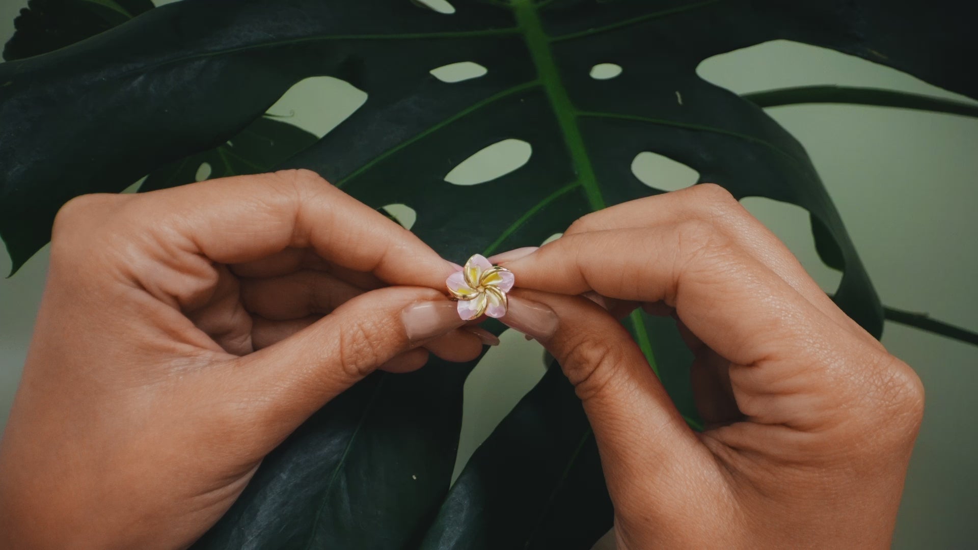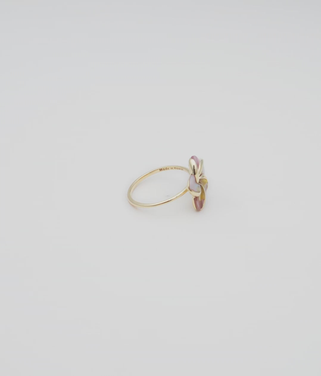 Plumeria Mother of Pearl Ring in Gold - 16mm